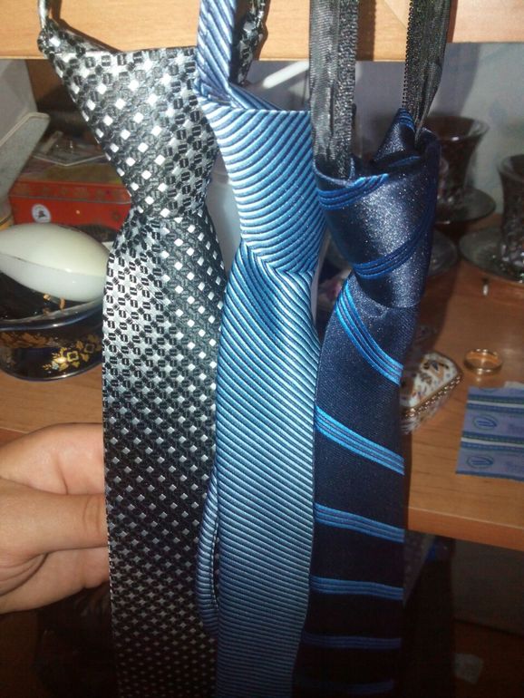 1 фото (клипса) - черный (без полосок) бежевый в диагональную полоску (самый светлый) и голубой в диагональную полоску (через один от бежевого)