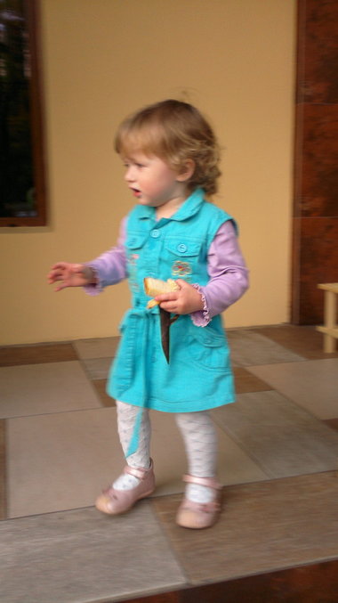 Это на первое мая, с друзьями вышли в кафе. Вероника вела себя неплохо, в основном гуляла на детской площадке.