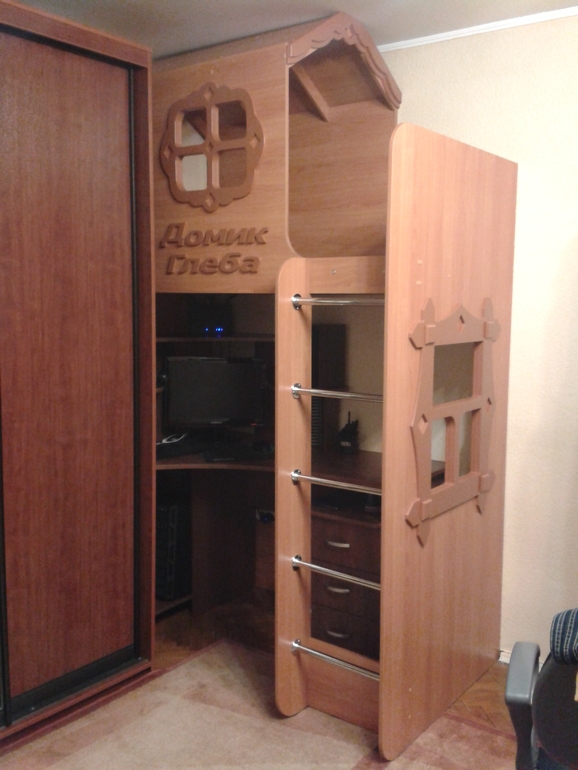 Продам детскую кровать-чердак в виде домика. Изготовлялась на заказ по индивидуальным размерам известной здесь многим компанией (ручная работа!). Материал- ЛДСП Эггер, декор - МДФ Эггер (буквы, окна, наличник на крыше). Буквы легко снимаются (держатся на двустороннем скотче). Состояние идеальное! Была в использовании всего 2 года. Размер спального места - 160×75. Цена- 17000 руб. Покупали за 45000 р.