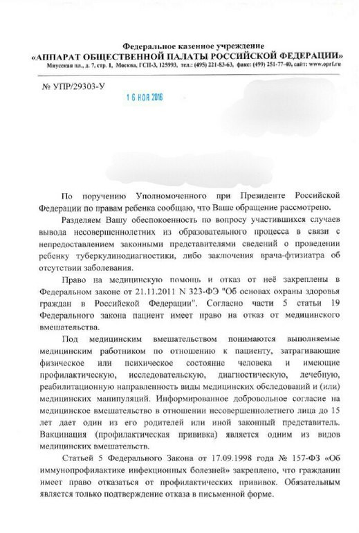 5) гл.2, ст.5, п.1. (о праве на отказ от вакцинации и получении от медицинских работников полной и объективной информации о необходимости прививок) и гл.2, ст. 11. п.2 (о проведении вакцинации с согласия родителей несовершеннолетних) Закона РФ № 157-ФЗ от 17 сентября 1998 года.