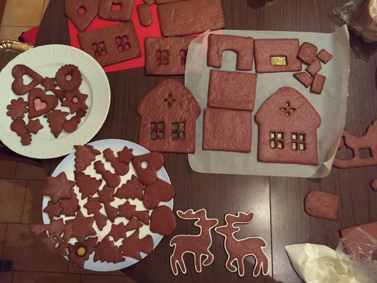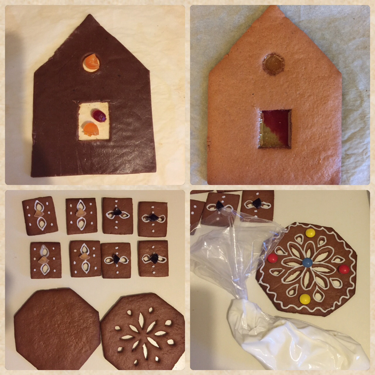 К сожалению процес долгий и у меня занимает 4 вечера. Первый- Приготовление теста и подготовка шаблонов, второй- выпекание и декорирование, третий- монтаж стен и четвёртый - монтаж крыши.
