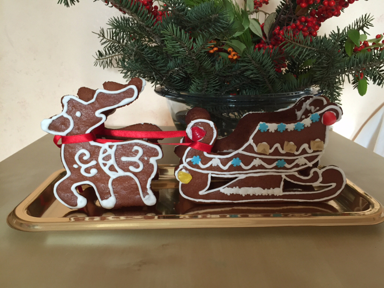 Для лучшей поддержки можно поставить стаканы. Как только клей- айсинг засох, можно ставить крышу. Вот так выглядят в готовом виде. В домики можно вставить подсветку, в шкатулки и сани положить печенье.