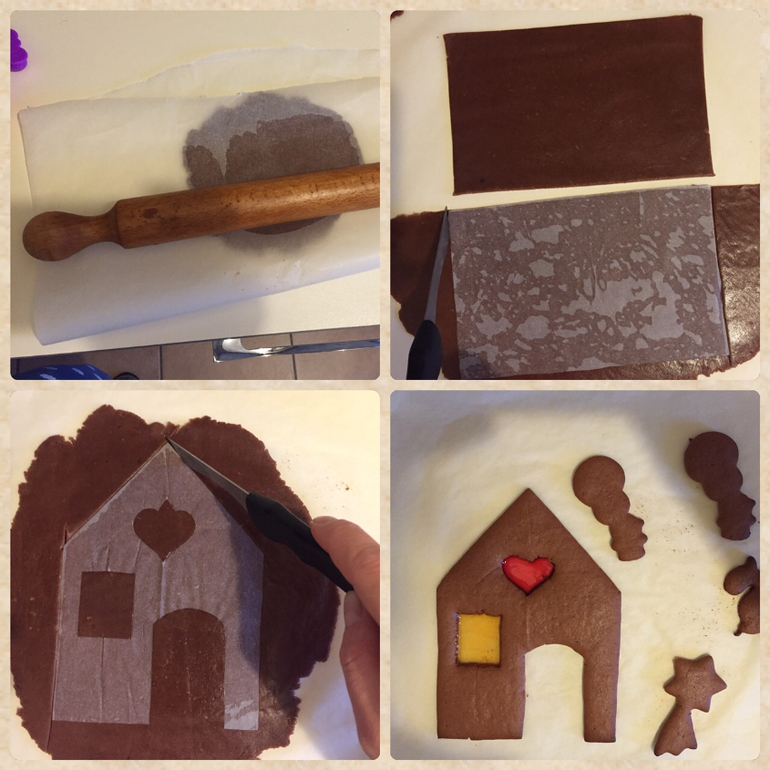 Время выпечки от 6 до 8 минут при 180 градусах в зависимости от толщины теста. Я обычно делаю стены потолще и крышу потоньше, так она будет держаться лучше, особенно если её декорировать конфетами.