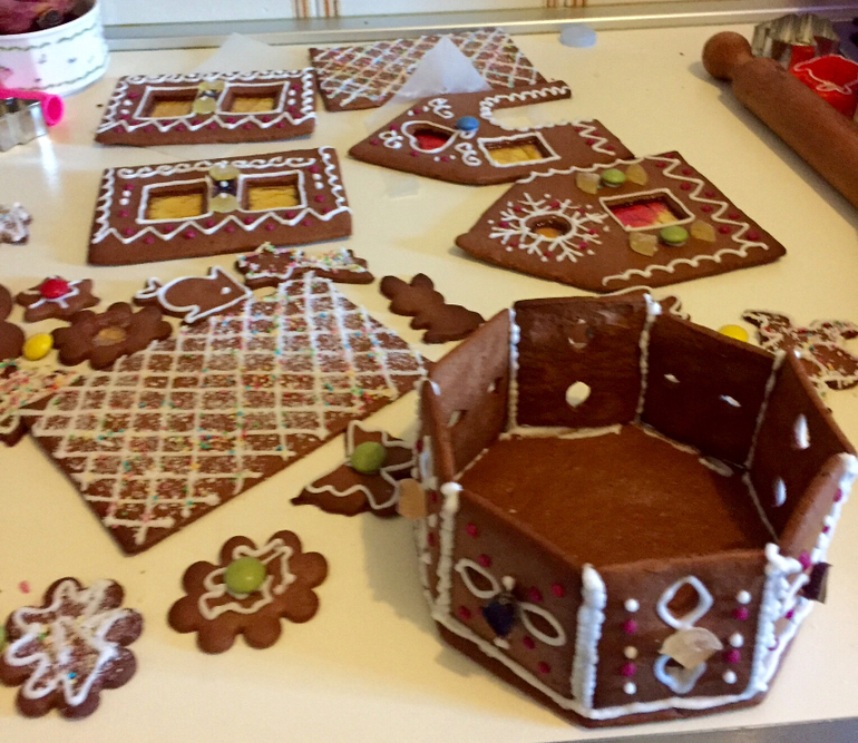 Все домики с леденцовыми окошками. И ещё попробовали сделать шкатулки и сани деда мороза. Под катом много фото