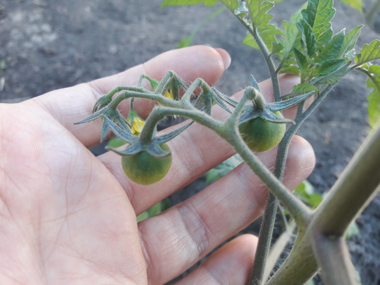Первые завязи томатов, высаженных в грунт на прошлой неделе очень обрадовали 🤗 Погода мягко говоря у нас эту неделю стояла "не очень": то дождик моросил и порывы ветра сильные, то холод, то солнце яркое... Видимо это стресс от пересадки 😂 и инстинкт самосохранения у них сработал!