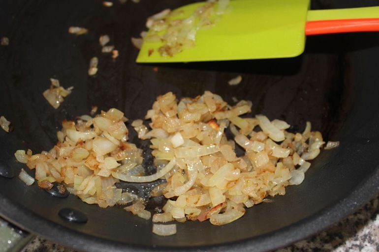 2. Секрет- лук мелко нарезаем половину пассеруем на сливочном масле