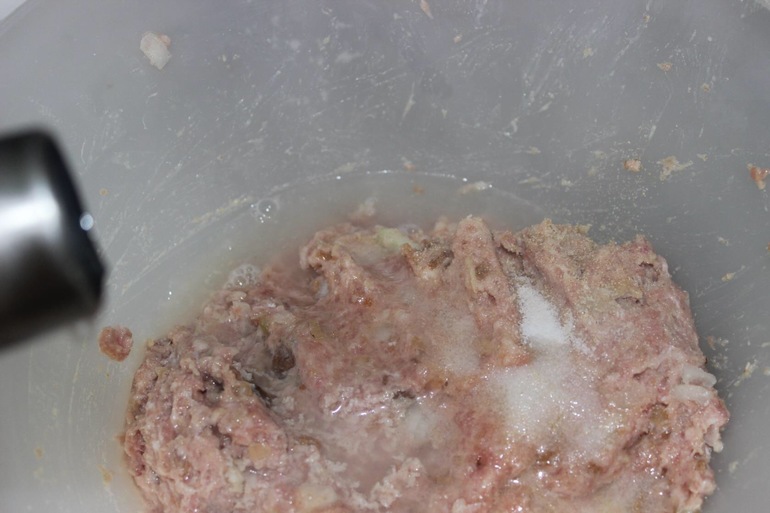 4. Секрет - добавляем сахар, та же история как когда добавляют соль в сладкое, это оттенит вкус и добавит сочности. На 1кг мяса 1 ст л, в моём случае на 500г - 0,5 ст л.