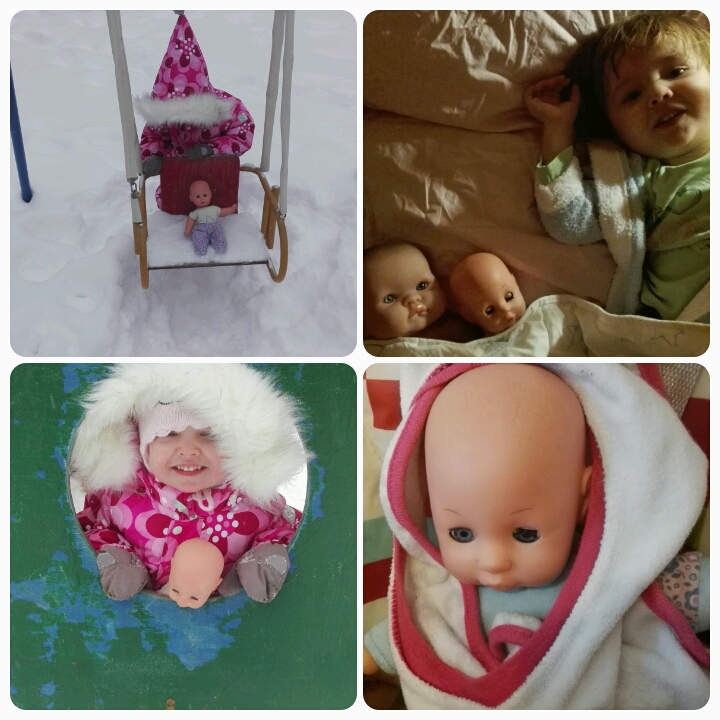 Появилась безумная любовь к кукле Кате. Везде с ней. Если дома ее где-то заиграет, то ходит плачет, ищет. Проявляет заботу и ко мне. Всера я что-то делала, подходит и говорит : " Давай помогу!" Делится со мной вкусняшками. Если чищу мандарин, обязательно отдает мне половину. Мамина дочка. Очень ко мне привязана. Спит опять со мной. Подходит иногда обнимает и говорит, что любит. Это то, о чем я всегда мечтала. И по традиции ыотоотчет за месяц.