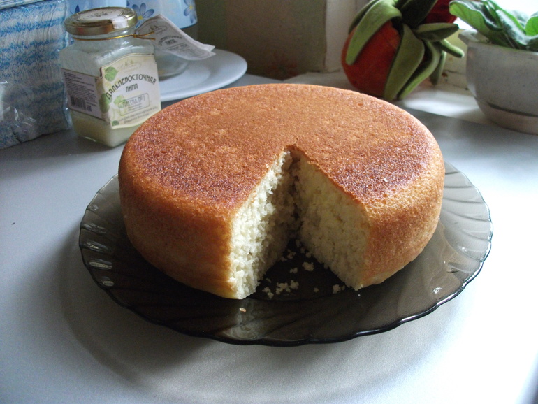 Манка — 1 стаканМука — 1 стаканКефир — 1 стаканСахар — около стакана.Сода — 0,5 чайной ложкиЯйца — 2 штуки.Приготовление.Кефир смешать с манкой оставить на 35 минутПосле получаса добавить яйца и сахар, хорошо перемешать до однородной массы.Потом добавить муку и соду.Заливаем в форму и в духовку на 35-40 минут.Я сегодня делала в мультиварке, поставила на 35 минут.