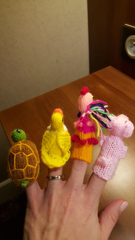 Это пальчиковые вязаные игрушки! Увидела на рождественской ярмарке и не смогла пройти мимо... сделаны просто великолепно!!! Теперь каждый вечер с девчонками поем песенки и ставим сценки с этими милыми животными (и птицами))