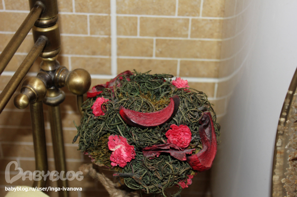 В туалете это сухой букетик (чет, на фото все таким пыльным кажется, пошла проверила... пыли нет, хм...)