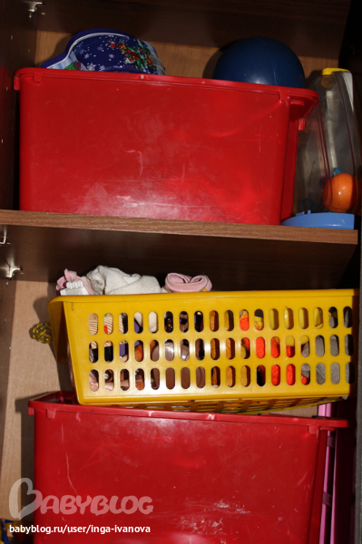 Шкаф-купе с Плиными игрушками, коробки красные