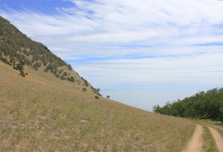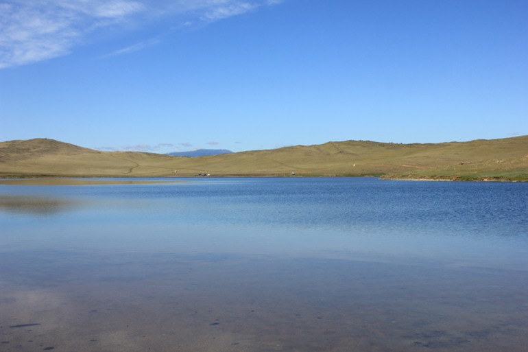 Первое место остановки Озеро Ханхой-Находится в степной части острова, соединяется с Байкалом небольшой протокой и отделяется от него песчаной косой, которая образует пляж. Вода здесь прогревается быстрее, чем на Малом море. Озеро — излюбленное место для отдыхающих-любителей поплавать, порыбачить на соровую рыбу. При подъезде к озеру стоит шлакбаум и написано "Въезд запрещен", но нашему водителю было все-равно, он так культурненько объехал по воде и встал там, где нужно было ему.