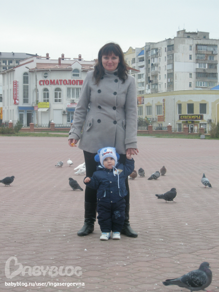 Наконец-то выбрались прогулятся с подругой,а то болели малые по очереди.Пришли на красную горку,а там голубей куча прям покормили с Никитой,один прям из рук кушал.Никите очень понравилось за ними бегать,а я бегу с ним за ручку и понимаю,какой же взрослый у меня уже сынуля,уже учится ходить,так растрогалась чего-то))))))))Так интересно с ним гулять по взрослому.Домой правда ехать в коляске наотрез отказался,орал как резаный.Взяла на руки,так нам и этого мало,надо ж свесившись с мамы коляску катить,а ещё лучше и ручку грызть при этом....В общем домой мама вернулась "в мыле",но морально удовлетворенная))))И фото прилагаются