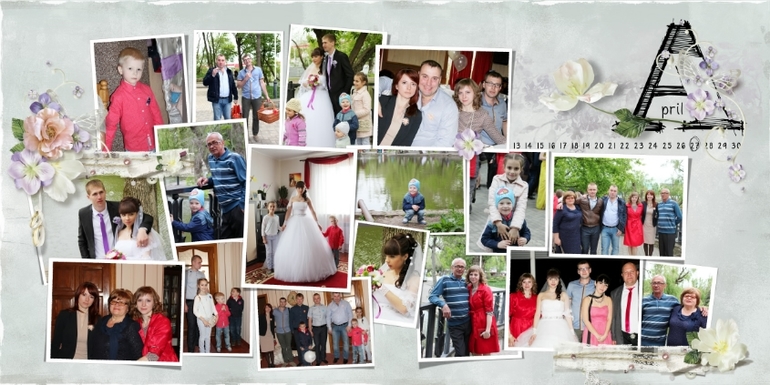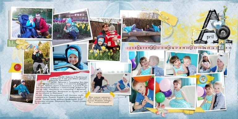 Это февраль и март на четырёх разворотах. Делать неделю на разворот-то не хватает фотографий, то их наоборот много, посвящённых одному событию! Да ещё и хочется, чтобы они сочетались друг с другом немножко! Поэтому вот так!