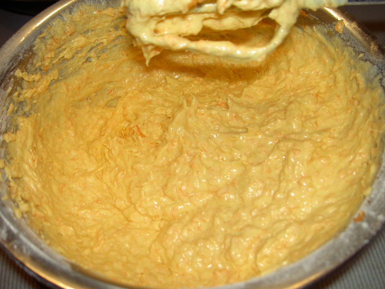 Морковь натереть на мелкой терке. Размягченное сливочное масло взбить с сахаром миксером (можно растереть ложкой):