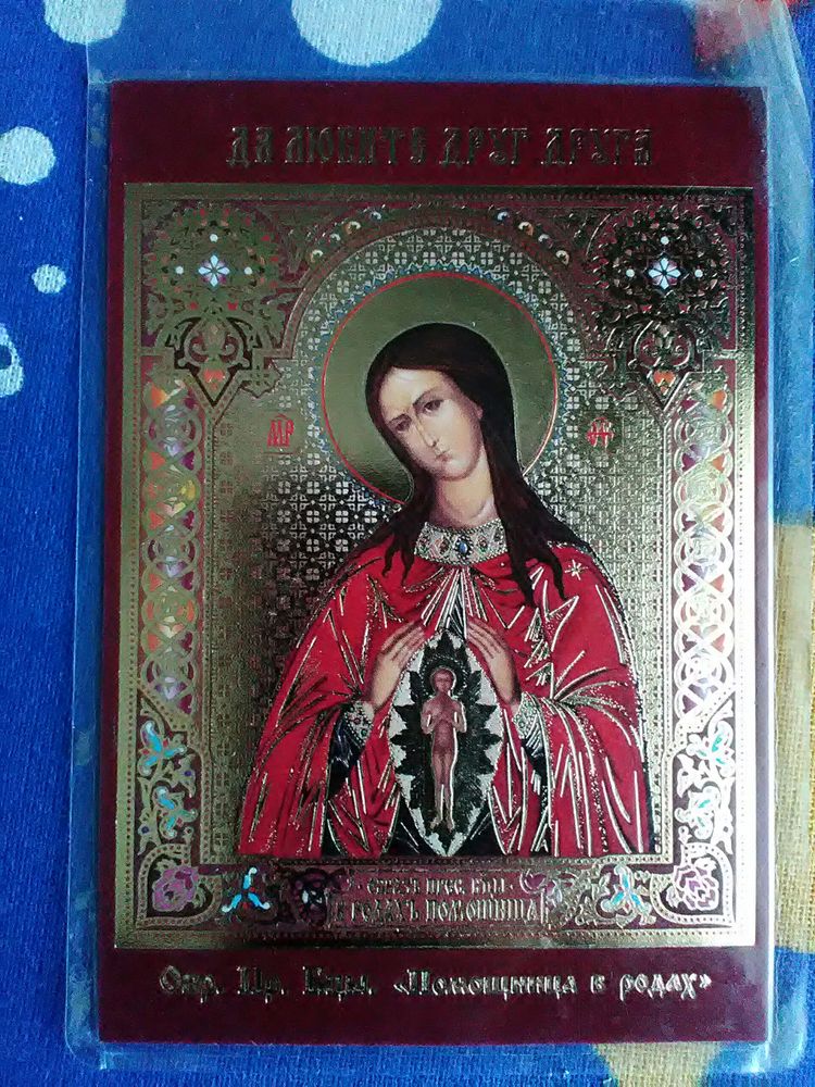 Ещё есть икона, где Дева Мария в положении помогает для легкого вынашивания ребенка, но она достаточно редкая и я её не нашла.