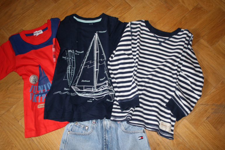 12. На 3-5 лет. Шорты и мака глория ждинс, майка с якорем некст или мазе кея не помню, 750 р.![]()