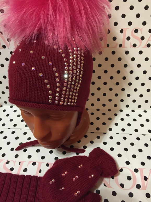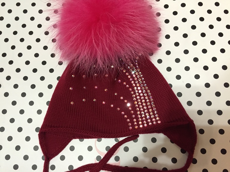 Большие стразы Сваровски, помпон огромный, двойная шапочка мер нос, варежки тоже двойные теплющий и очень мягкий комплект. На ог до 52 см. Есть ещё шарфик, он новый.