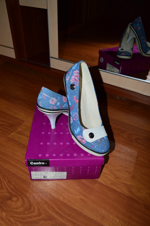 Продам новые туфли, устойчивый каблук- очень удобные- 750р. Материал- джинса в цветочек и кожзам. В родной коробке.