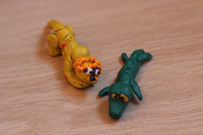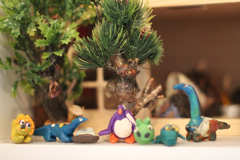 это творения его личные) лев, динозавр и гнездо с яйцами, пингвин, свинья из angry birds, крокодил и динозавр