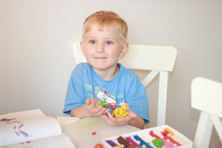 и начал лепить. Даже воспитатель в саду отметила, что Кирилл просит у нее книгу по лепке и творит) похвалила. В саду лепит динозавров, божью коровку на листочке и др. Дома мы лепим с ним вместе, по книжке, параллельно)