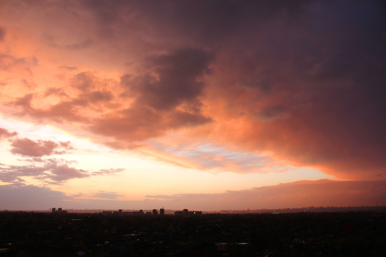 Невероятная красота! Мы живем на 24-м этаже! Вечером попробую найти фото на компьюетере закатов и рассветов! А еще - ночное небо!
