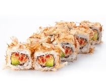 бонито ролл с лососем-ну,это классика жанра! в копченой стружке тунца)))нямка