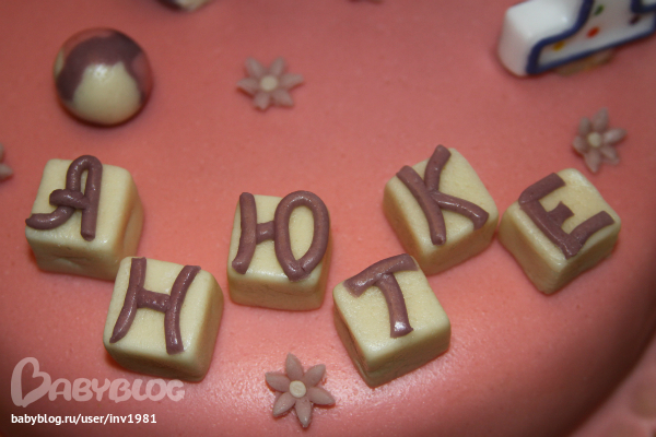 Спасибо, Наташенька!А У Ани персонального тортика не было - кушала вместе с нами :) А украшения из мастики вообще у неё еле отнимала - они на основе сгущенки, можешь представить, как у дитятки отобрать конфетку :))))))))))))