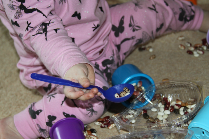 Можно много говорить о пользе игр с крупами для развития мелкой моторики и координации движений, но... Самое главное, что все малыши просто балдеют от такого занятия! Анютка у меня сейчас может час играть - конечно, нужно поддерживать её интерес, показывая новые приемы, как бы невзначай подкидывая интересную ложечку или коробочку с маленькой дырочкой, куда замечательно засовывать по одной фасолинке :)