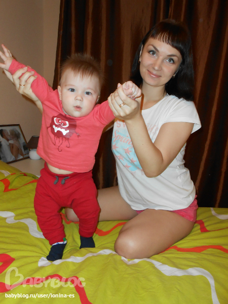 Ползаем мы по плостунски, на четвереньках стоим раскачиваемся, ползаем задом, а вперед никак ни поймем! Сидит уже очень хорошо, без поддержки, но сам пока не садится. Обожает прыгать постоянно скачит и сидя и на коленках и даже лежа ))))