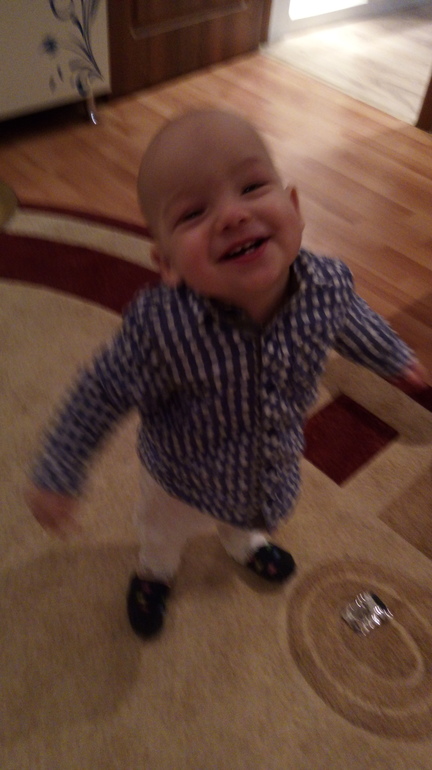 Итак, что нового в наши 1.2 ? Главное достижение и радость - в 1 год и две недели мы научились ходить. Причем настолько резко это произошло, что я даже опомниться не успела. Просто в один прекрасный вечер Рома взял и оторвал руки от своей машины, на которой катается, и пробежал несколько шажков до ближайшей опоры. У него после этого такое ошалело-довольное лицо было,))) и все, через денька четыре он окончательно встал на ноги, и ползающим его теперь крайне сложно увидеть...