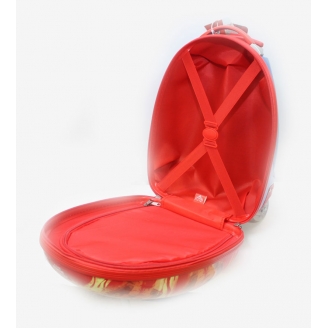 Описание: Выдвигающаяся ручка-телескоп, вращающиеся колёса с металлическими подшипниками, удерживающие ремни и карман на молнии внутри чемодана, на замках закрывающей молнии чемодана есть отверстия для навесного замочка.