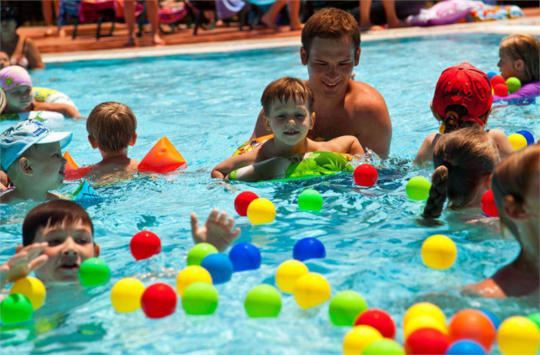 Наши маленькие гости весело проведут время в детском бассейне, располагающемся рядом с Детским Клубом, напротив бассейна с горками.
