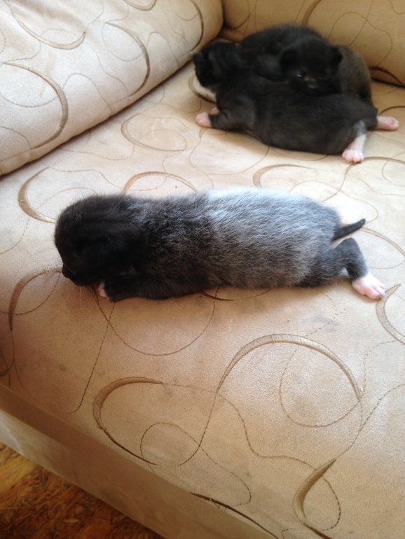 От домашней кошки. Родились в день семьи, любви и верности. 8 июля. 2 кошечки (абсолютно чёрная и абсолютно серая) и 3 кота (серые с белым и чётные с белым).