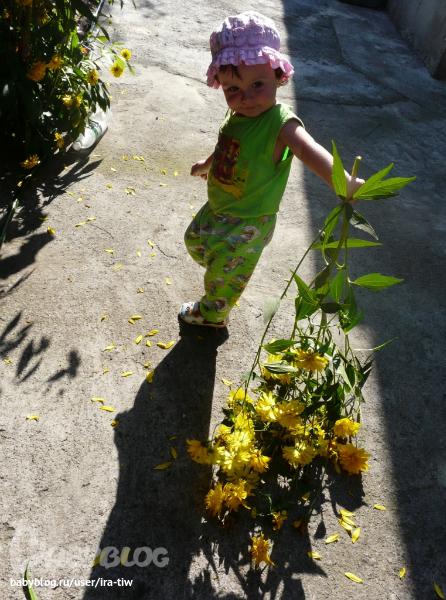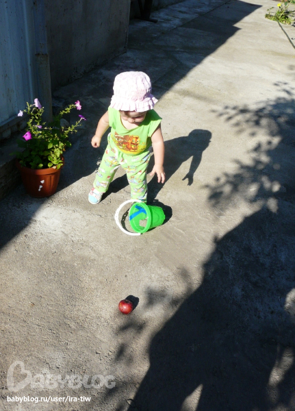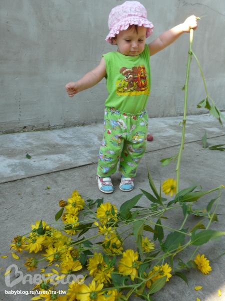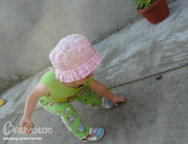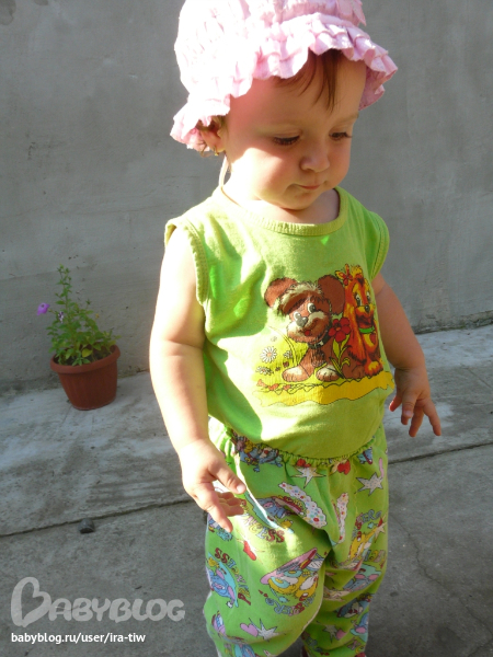 прыгает,бегает,в песочнице играется. дядя каждый день приносит какую-нить мягкую игрушку))) из складов-запасов старшего племянника)