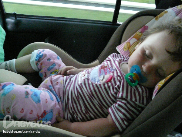 4 августа в ночь мы поехали на Укр к моим родным. Дорога была долгая и тяжелая. ехали 11,5 часов (вместо обычных 7-8), всё из-за таможни,на которой проторчали 5,5 часов в пробке! и то спасло нас то, что на коляске проехали ночью 4 км к пограничникам проситься без очереди пролезть. разрешили нам. и уже стоя в середине пробки муж с папой моим раздвинули машины (благо люди понимающие оказались) и поехали по встречке. Кируська всю дорогу выдержала очень стойко - за ночь ни разу не заплакала, хоть и спала всего лишь пару часов - остальное время мы на коляске катались (поспала в ней ночью немного по дороге к погранцам) и в машине скакала по сиденьям)))