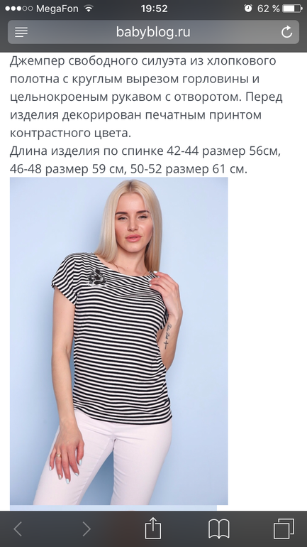 Длина изделия по спинке 42-44 размер 54 см, 46-48 размер 55 см, 50-52 размер 59 см.