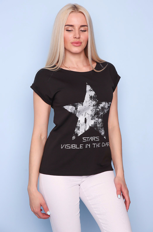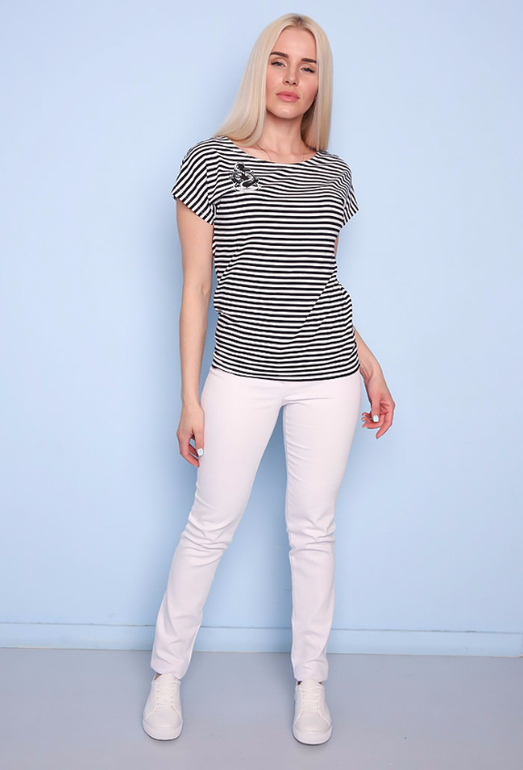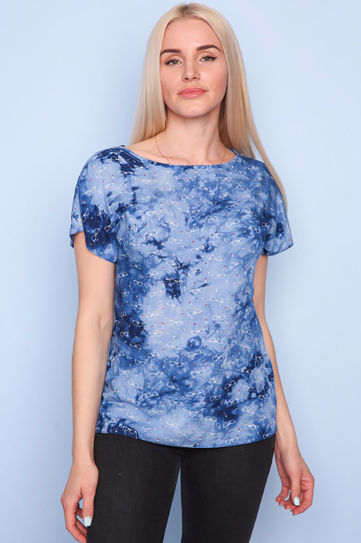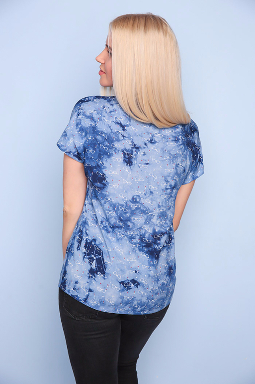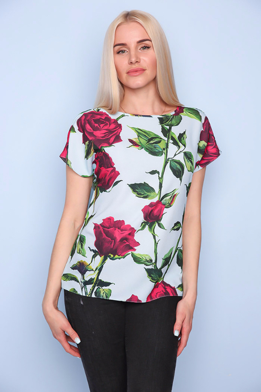 Блузка из штапеля свободного кроя с коротким цельнокроенным рукавом.Длина изделия по спинке 42-44 размер 62 см, 46-48 размер 63 см, 50-52 размер 64 см.