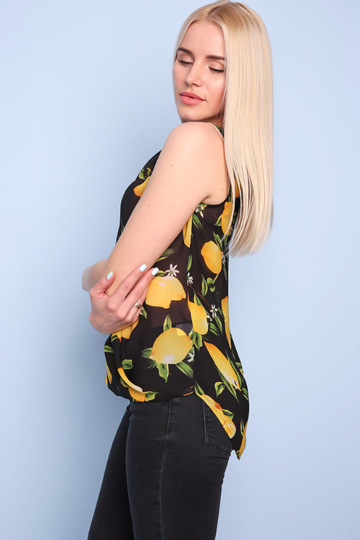 Топ с запахом свободного силуэта из шифона. Изделие с напуском в нижней части переда и удлиненной спинкой.