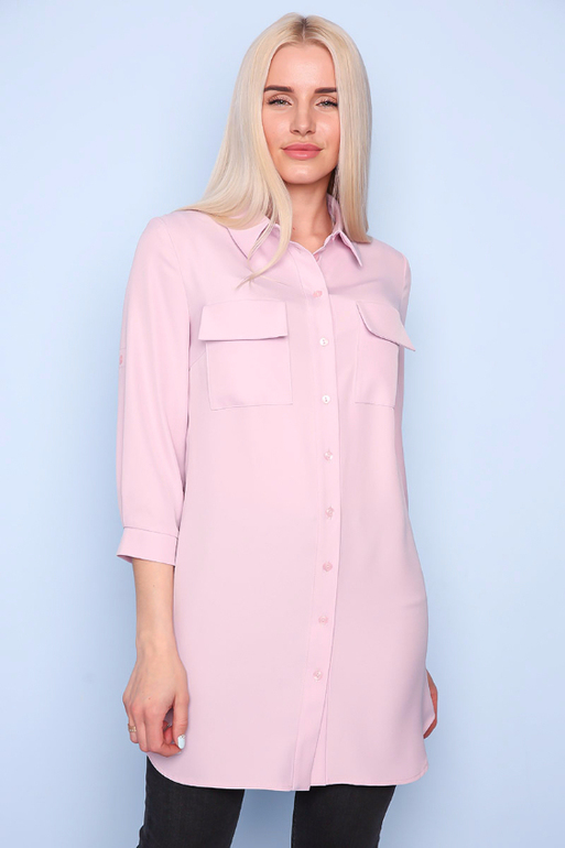 Туника свободного силуэта из штапеля . Модель с отложным воротничком рубашечного типа. Центральная застежка на планку с пуговицами. Рукав дополнен манжетой с застежкой на пуговицу. Длина рукава регулируется с помощью паты и пуговицы.Фигурный низ изделия. Ремень в стоимость не входит.