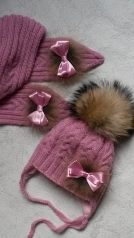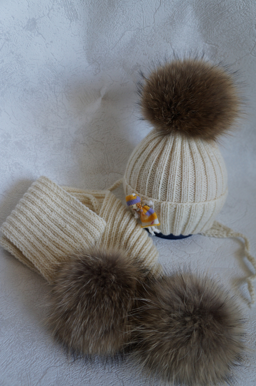 Шапочка, шарфик, п/ш. помпон енот.