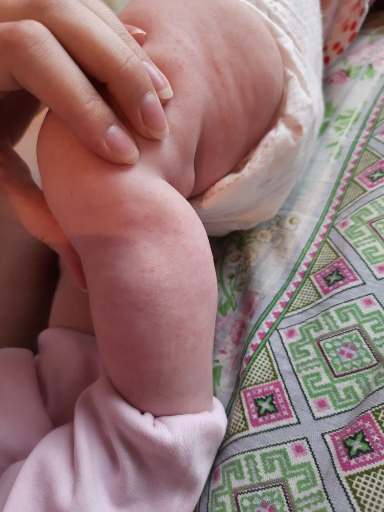 Ребёнку 5 месяцев на гв. Пару дней назад появились высыпания, локализация на ляжках, потом прошло и появилось на голенях. Ничего такого нового не ела, что бы её высыпало. Сыпь её вроде не беспокоит. Думала может потница, но она не проходит. Фото приложу. Даю таблетки от зубов -дентокинд, вчера пробовала не давать, так орала как резаная до вечера, а вечером не выдержала и дала опять, так ребёнок почти сразу успокоился и нормально ушла в ночь. Девочки посмотрите может было у кого похожее. К педиатра вызвала, но пока его дождешься