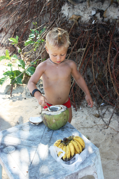 2. Наша массажистка привозит нам каждое утро наивкуснейшие свежие кокосы и бананы с рынка за 25 руб (даю 40 за хлопоты). Плюс хочу сделать маленькое промо для нее: фото, где Макс с балдежным лицом лежит на массаже распечатать со слоганом на русском, заламинировать и подарить.