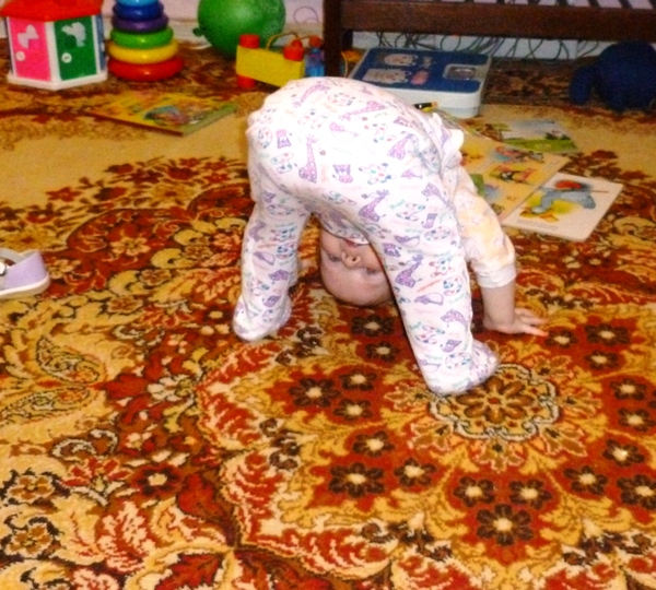 Научилась залазить на кресло, на диван и кровать пока не может, они выше, но попытки уже были. Однажды вижу картину Алинка стоит на горшке, который до этого принесла в спалню и пытается залезть на кровать! Я была в приятном шоке,сообразила ведь!