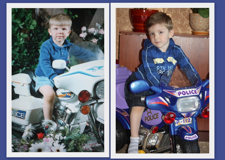 Иногда полезно покопаться в старых альбомах))) Вот что нашла! Разница в 15 лет! Денису - 2 и 8, Максу - почти столько же (12.07.13 исполнится)