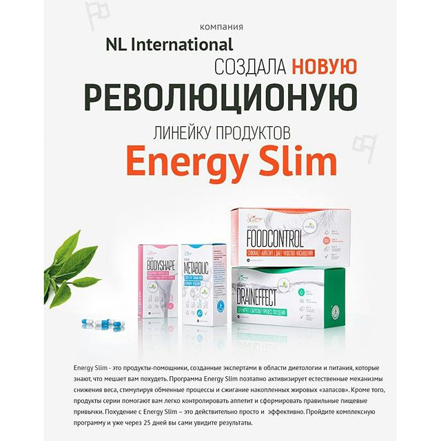 Energy Slim - новый революционный продукт, который сделает вашу диету легкой и комфортной! Комплексная программа из четырех продуктов рассчитана на 25 дней и задействует основные механизмы снижения веса, активизируя разные системы организма в нужной последовательности. 1. DrainEffect - дренирующий напиток. 2. FoodControl - контроль аппетита. 3. Metabolic - активатор обмена веществ. 4. BodyShape - формировщик силуэта. Производство EnergySlim полностью соответствует требуемым стандартам качества и максимально исключает человеческий фактор. Современное оборудование и многоступенчатый контроль на всех этапах производства - от сырья до готовой продукции - позволяет добиться стабильности и абсолютной воспроизводимости оригинальной рецептуры Energy Slim от партии к партии. А это, в свою очередь, обеспечивает высокую эффективность продуктов и отличные результаты. В каждом кейсе брошюра с программой похудения. Цена кейса: 3990 руб. Заказ у меня или по ссылке в профиле Доступен для покупки на территории России, Беларуси и Казахстана. Худеть легко и приятно! #москва#россия#доипосле#результат #ПП#Любовь#деньги#мило#следуй#мода#как#еда#стиль#жизнь#диета#вес#спорт#фото#здоровье#худеемвкусно#работа#круто #энерджидиет