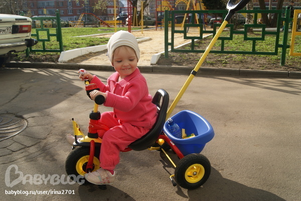 очень удобный, сиденье регулируется, чтобы ребенок доставал до педалей) а главное с надувными колесами, бесшумный. А главное не китайский)))) в Москве за 8000 видели , мы заказали в СП здесь на ББ за 4500