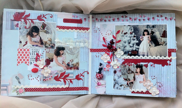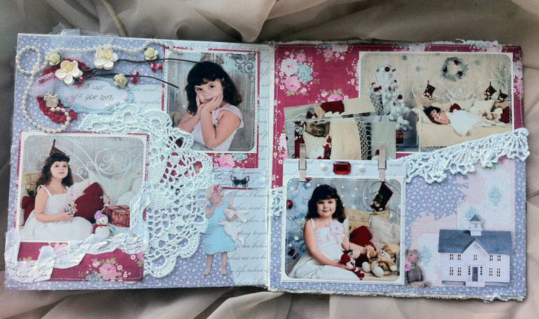 альбом 25х25 см, 5 разворотов(10 страниц), тематика нового года + день рожденье у Кристюхи 17 декабря.два в одном,так сказать))). наконец-то и себе что-то сделала)))