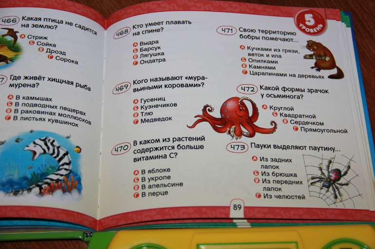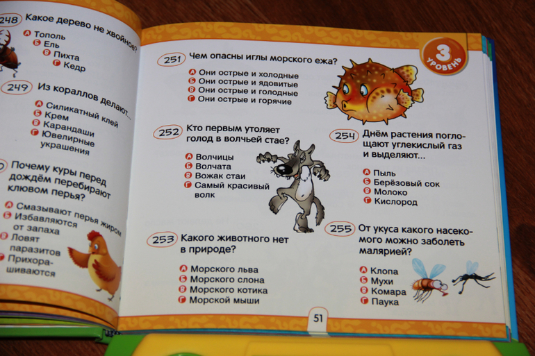 У книге 6 уровней, чем выше уровень, тем больше очков ты получаешь за правильный ответ. Конечно, пока Ксюша не читает, поэтому сама не может ей пользоваться, но зато мы вместе играем-занимаемся..
